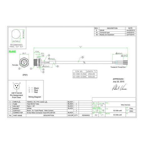 Waterproof 3-Pin Power Single-Ended Cable Set