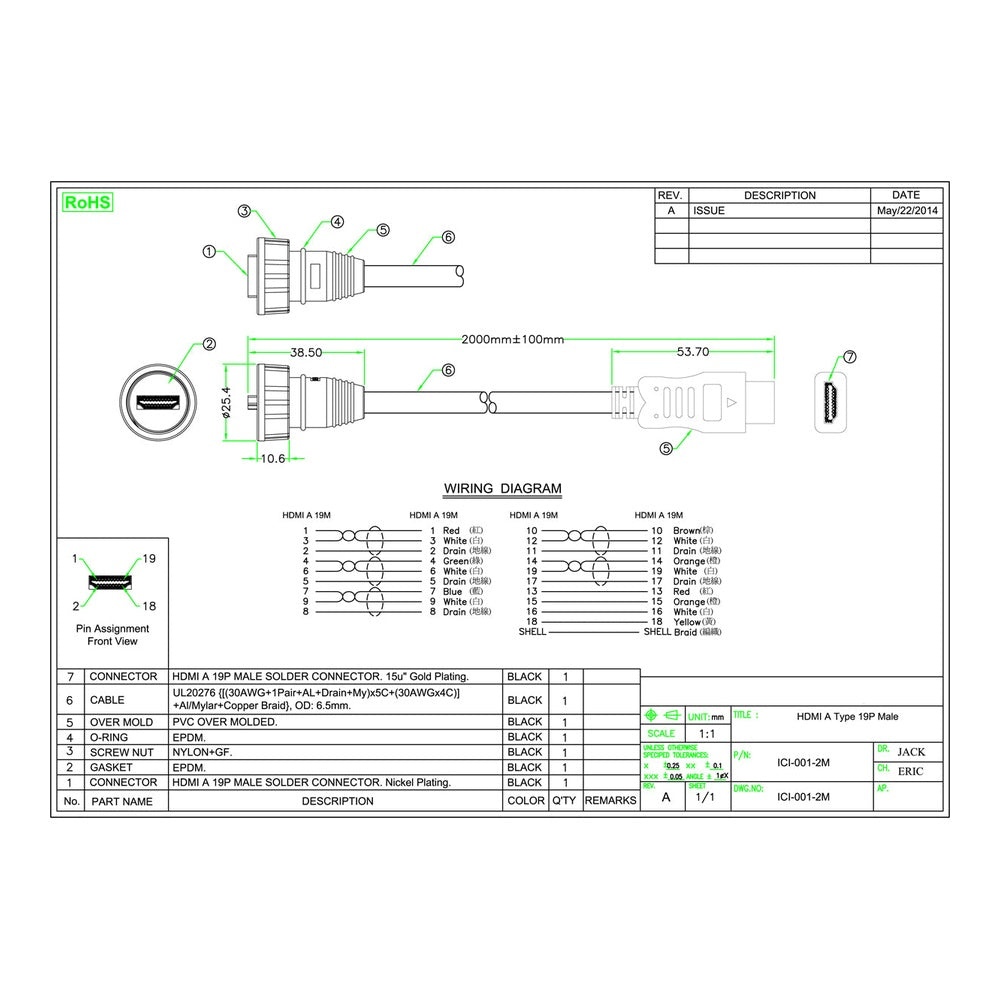 - Mating Panel Mount HDMI Connector (F/F) w/ Gasket/Nut